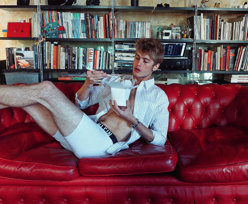 J. isn't wearing anything that covers his private parts.